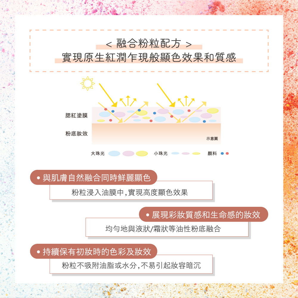 添加 5R 幻彩珠光,任何顏色皆可達到自然融合、襯映肌膚