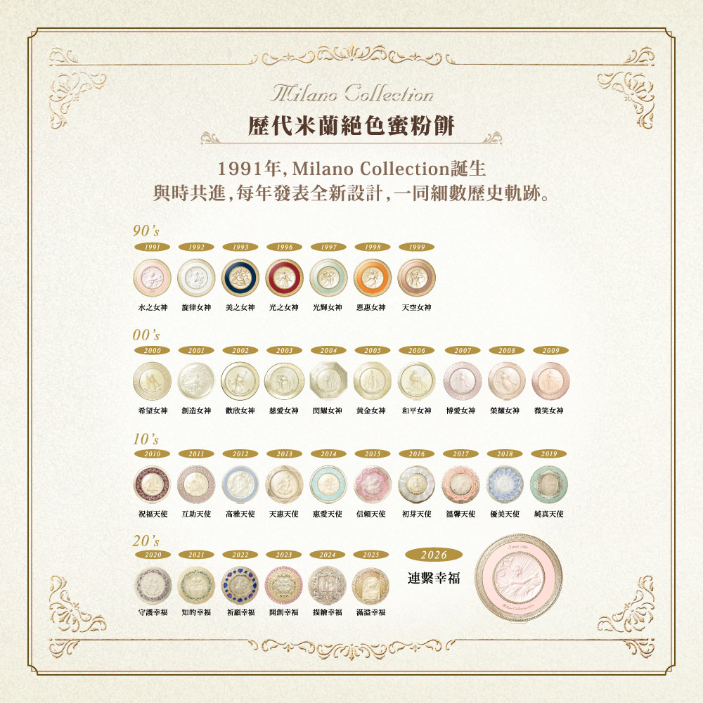 ★ 承載 Milano Collection 品牌原念的全新啟程決心,重磅復刻初代蜜粉餅精美的女神浮雕