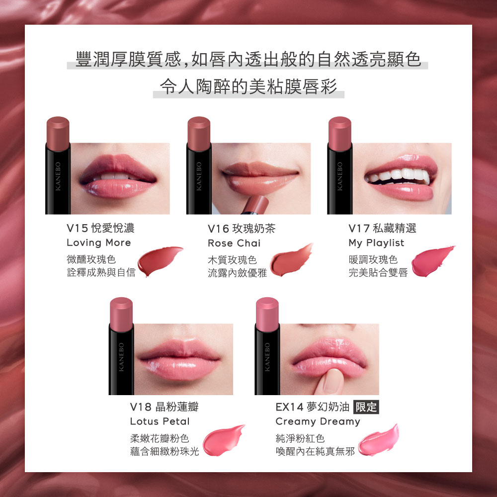 ✅ 如同美麗黏膜般的光澤:帶有光澤的滋潤厚膜,使雙唇呈現豐盈美感