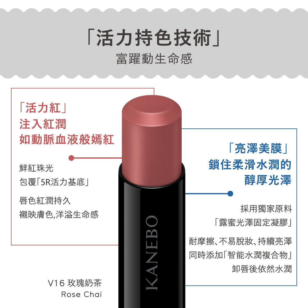 ✅ 「5R活力基底」:唇色紅潤持久,襯映膚色,洋溢生命感