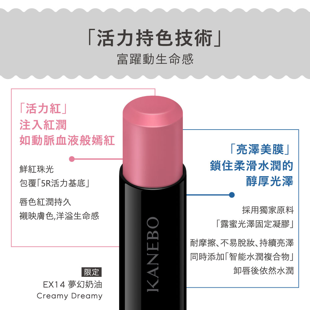 ✅ 「5R活力基底」:唇色紅潤持久,襯映膚色,洋溢生命感