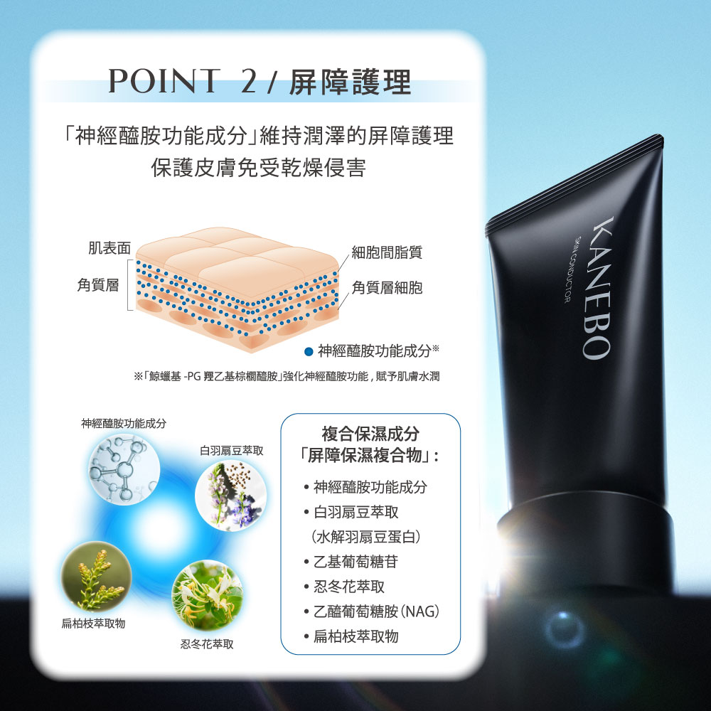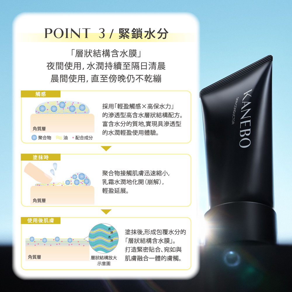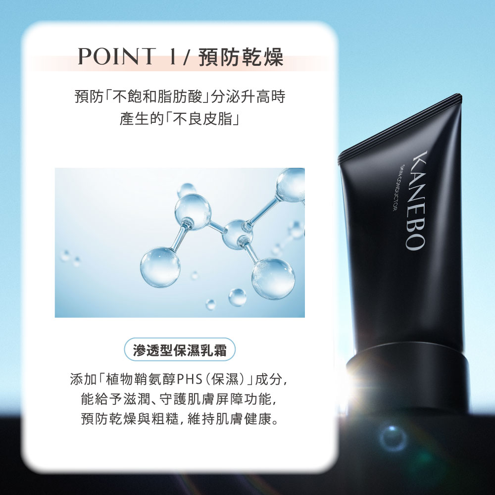 KANEBO著眼於「不飽和脂肪酸」會再次滲透進角質層,導致屏障功能與含水量下降,添加