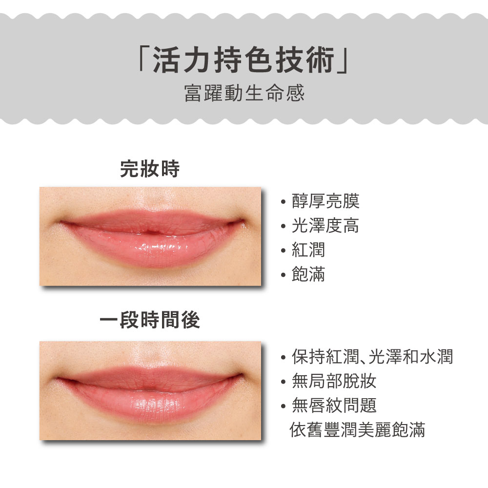 ✅ 「5R活力基底」:唇色紅潤持久,襯映膚色,洋溢生命感